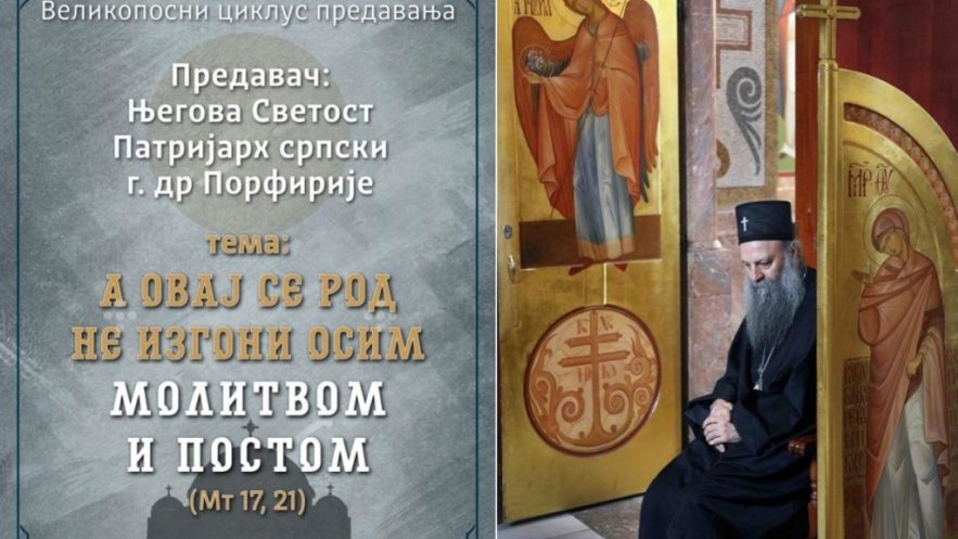 У оквиру великопосног циклуса предавања у храму Светог Саве на Врачару, четврто у низу одржаће Његова Светост Патријарх српски г. Порфирије. Његова Светост Патријарх српски г. Порфирије одржаће предавање на тему "А овај се род не изгони осим молитвом и постом", у уторак 5. априла 2022. године у 18,00 часова у крипти храма Светог Саве.