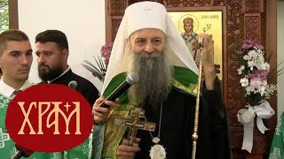 Патријарх је у беседи рекао да је овај храм дом у којем се учимо вери, речи Христовој, учимо се заповестима Божијим, и одлучујемо да заповести Божије обликују наш живот. Освећујући и осветивши овај храм треба да знамо да је ово место сабирања - место где се служи Света Литургија која је Царство Небеско.