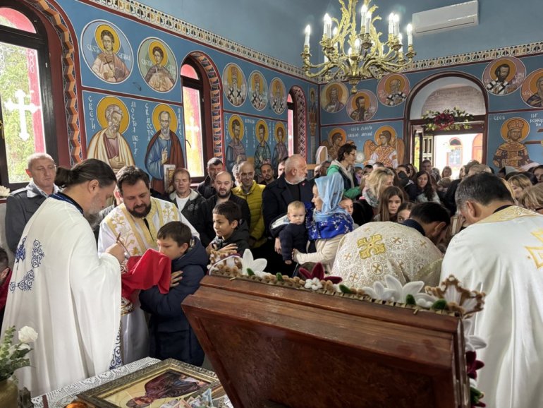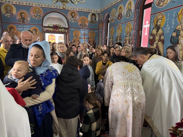 У беседи, владика Иларион је тумачио данашњу причу из Јеванђеља, позвао да будемо попут светог апостола Петра да идемо за речју Христовом и истакао да се у храму Свете Тројице налази икона Мајке Божије која је дар из Манастира Савина.