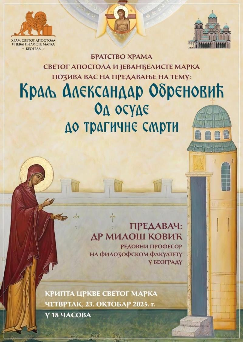 Краљ Александар Обреновић сахрањен је у Цркви Светог Марка у Београду, у породичној гробници династије Обреновић. Његови посмртни остаци, заједно са остацима краљице Драге, пренети су у ту гробницу 1903. године, након Мајског преврата, када су убијени у Краљевом двору. У крипти Храма Светог Марка данас се налази и гроб кнеза Милана Обреновића, као и других чланова ове српске владарске породице.