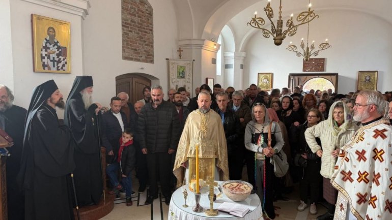 Након причешћа Светим Даровима у којима су удела узели готово сви присутни, по свршетку свете Литургије, оци су у славу Божију, а у част и спомен Патријарха Павла, освештали славски колач и жито.