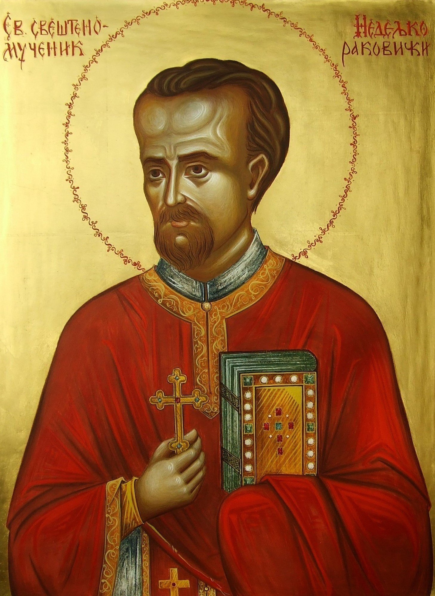 Отац Недељко рођен је 1907. године у Медвеђи, школовао се у Призрену и Београду, а као млади свештеник служио је у Приштими, а потом у Раковици. У времену када је режим жестоко притискао Цркву, постао је покретач духовног живота своје заједнице. Због верности истини ухапшен је од Озне, а 21. маја 1945. године, у 38. години живота, стрељан је и тајно сахрањен. Иза њега су остале супруга Бранислава и две малолетне кћери – Надежда и Загорка. Рехабилитован је 2018. године, а 2022. године Свети Архијерејски Сабор СПЦ канонизовао га је у лик светих.