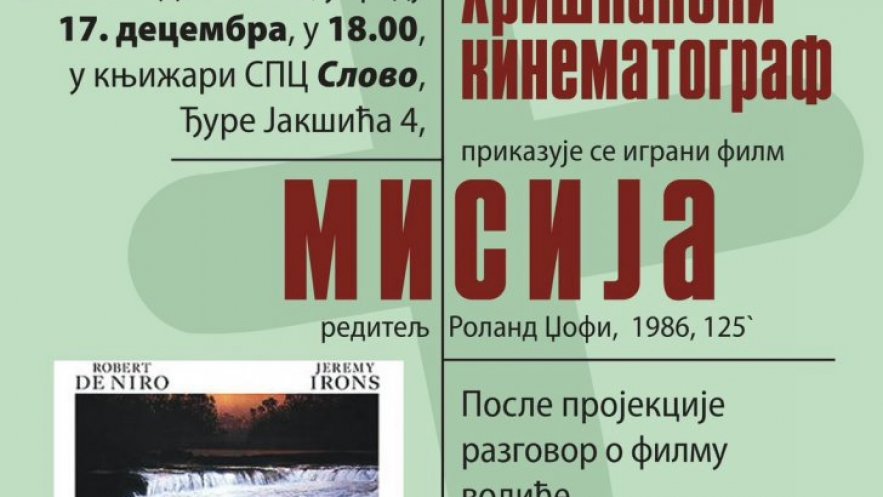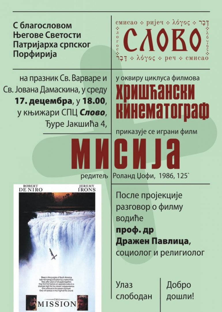 Реч је о остварењу редитеља Роланда Џофија из 1986. године, у трајању од 125 минута, које спада у антологијска дела светске кинематографије и снажно отвара теме вере, жртве, слободе и мисије Цркве у свету.