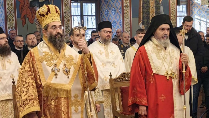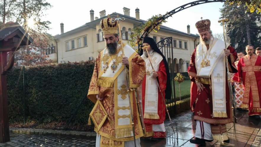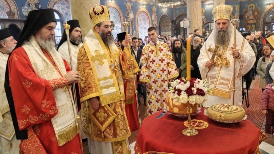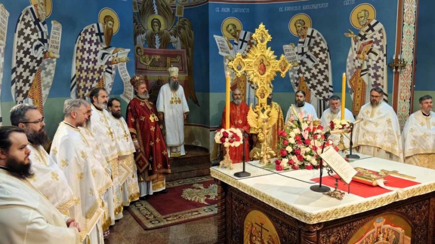 Овим литургијским сабрањем прослављена је крсна слава Високопреосвећеног Митрополита нишког Арсенија и тим поводом освештани су славски дарови и преломљен је славски колач.