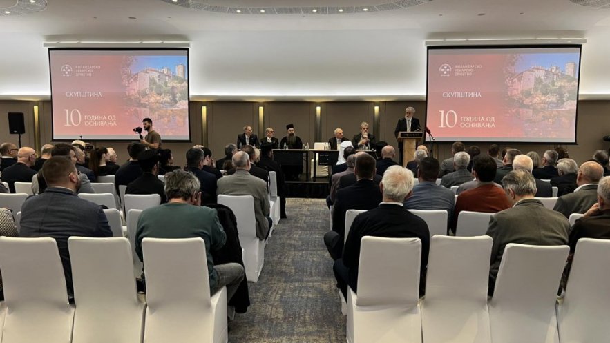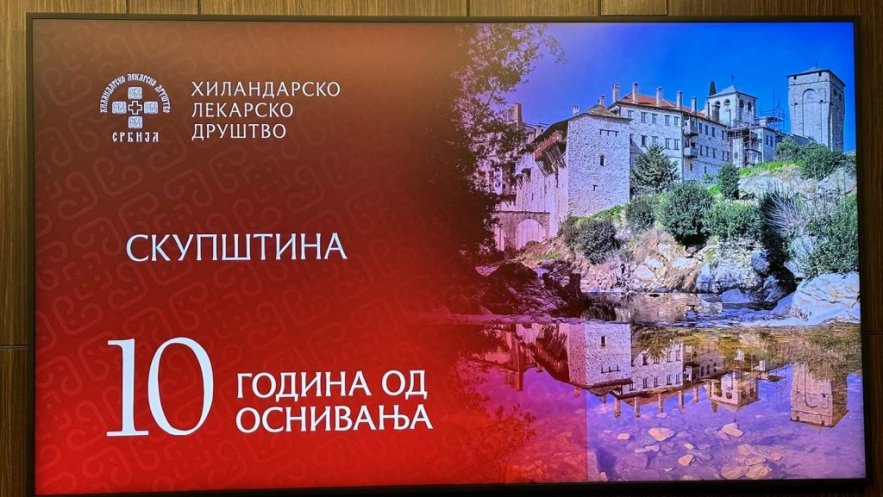 Свечаност је започела појањем Византијског хора „Свети Симеон Мироточиви“, након чега се присутнима обратио проф. др Радисав Шћепановић, председник Хиландарског лекарског друштва, који је поднео извештај о десетогодишњем раду, постигнутим резултатима и будућим правцима деловања Друштва и истакао да је Хиландарско лекарско друштво основано са идејом да се паралелно са обновом манастира Хиландара, обнови манастирска болница и здравствена заштита у Хиландару, да то не буде импровизација, већ да се постави као систем и да буде као трајна служба. За 10 година рада Хиландарско лекарско друштво окупило је више 1000 чланова, лекара различитих специјалности који долазе из 13 земља света.