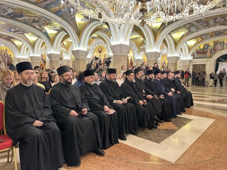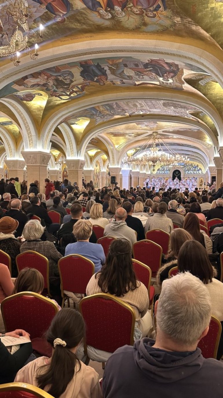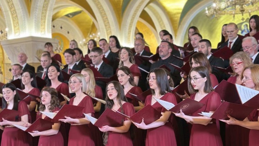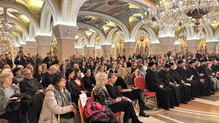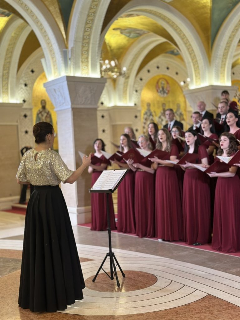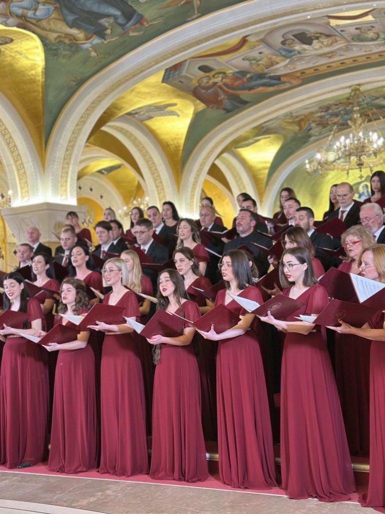 Пред многобројном публиком која се окупила у крипти светосавског храма, изведене су неке од најлепших духовних и народних нумера, међу којима су се нашле и традиционалне руске и француске композиције.