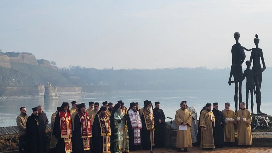 Помен невино пострадалим жртвама Погрома у Новосадској рацији је служио Његова Светост Патријарх српски господин Порфирије, уз саслужење Високопреосвећеног Митрополита бачког господина др Иринеја, Преосвећене господе епископâ осечкопољског и барањског Херувима, лондонског и великобританско-ирског Нектарија, ремезијанског Стефана и мохачког Дамаскина, свештенства и ђаконâ Епархије бачке и Архиепископије београдско-карловачке. После одслуженог помена Светејши Патријарх српски г. Порфирије се обратио присутнима и, између осталог, истакао: „Овде смо да изнова посведочимо сву трагедију греха и суноврата људске природе, да се опоменемо колико зла, разарања и смрти у овај свет доноси човеково одступништво од Бога и колико човек, када одступа од Бога, може да се извитопери, али и да исповедимо јеванђелску истину, истину наше вере, да без Бога не можемо бити истински људи, да не можемо бити оно због чега смо саздани и из небића доведени у биће. Покољ који се овде догодио плод је обезбоженог ума. То је пад човека у духовни бездан у којем други више није оно чему нас учи Јеванђеље, други више није брат него непријатељ, у којем се ближњи не посматра као икона Божја већ као сметња и претња, као противник. И управо нас зато Црква, браћо и сестре, позива да се молимо за све, за сваког човека, и да молитвено памтимо оно што се десило овде, не да бисмо мрзели, не да бисмо злопамтили, већ да се кроз сећање више никада и никоме не понови слично зло и да бисмо се исцељивали и исцелили молитвом и вером. Молитва и памћење су дуг према жртвама и опомена нама живима. Уче нас да човек без Бога лако постаје не само нечовек него звер, а народ без сећања неприметно клизи у амбис нових обмана. Свако страдање, свачија патња и свако мучеништво живе, пре свега, у вечном памћењу Божјем, али живе и у срцима људи, нарочито у срцима оних који су добили благослов и крст да буду носиоци мученичког венца. Вечни покој свима невино пострадалим у Новосадској рацији и свим страдалницима Бачке, страдалим у јануару 1942. године. Нека им Господ подари блаженство у Своме непролазном Царству, а нас, по молитвама њиховим, да укрепи љубављу и праштањем, да бисмо у последњи дан чули спасоносни глас Христов и постали заједничари Царства Његовог. Амин.ˮ