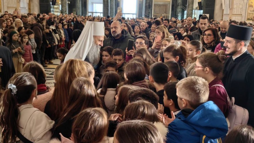 Патријарх Порфирије је благословио ђаке и њихове вероучитеље, и уручио поклоне деци са којом је провео време у сусрету пуном радости. Са очинском љубављу, Патријарх је рекао да нас Свети Сава учи да "срце треба да буде испуњено љубављу и добротом, као и да знање није само у учењу школских предмета, већ у сабирању врлина у сопственој души. "