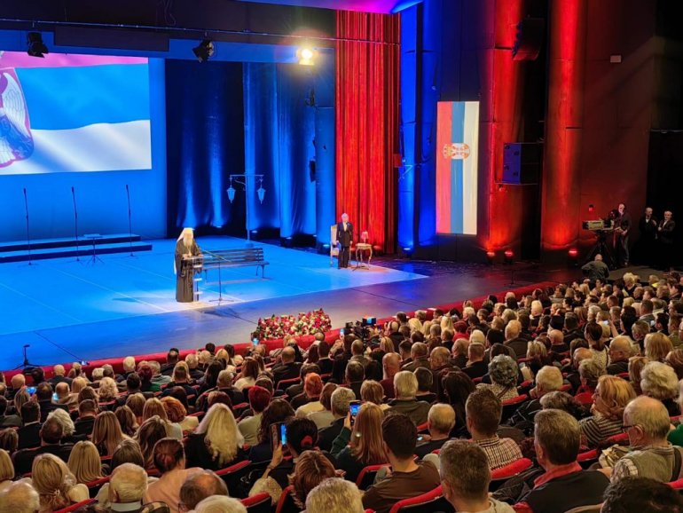 У Српском народном позоришту Патријарх је упутио благослов и истакао да Матица сведочи духовну и културну снагу једног народа, наглашавајући да наслеђе које примамо није само предмет поштовања и дивљења, већ и обавеза да га чувамо и унапређујемо.