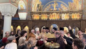 Након свеноћног бденија, Владика Доситеј је у поноћ служио и Свету архијерејску Литургију у манастирском храму, уз молитвено учешће верног народа престонице, који се сабрао да у првим часовима празничног дана дочека Недељу православља.