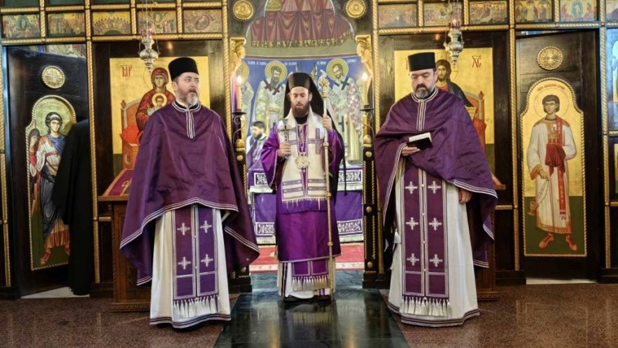 Преосвећеном Епископу г. Петру су саслуживали презвитери, ђакони и верни народ Божији.