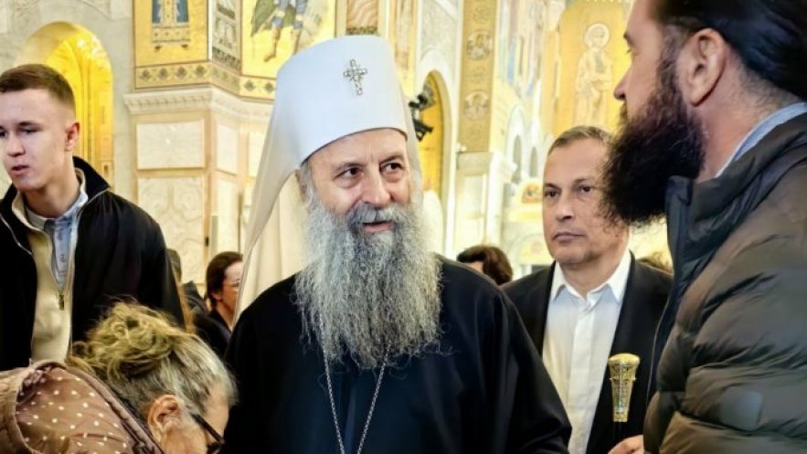 По завршетку Литургије, Патријарх Порфирије се задржао у срдачном разговору са верницима.