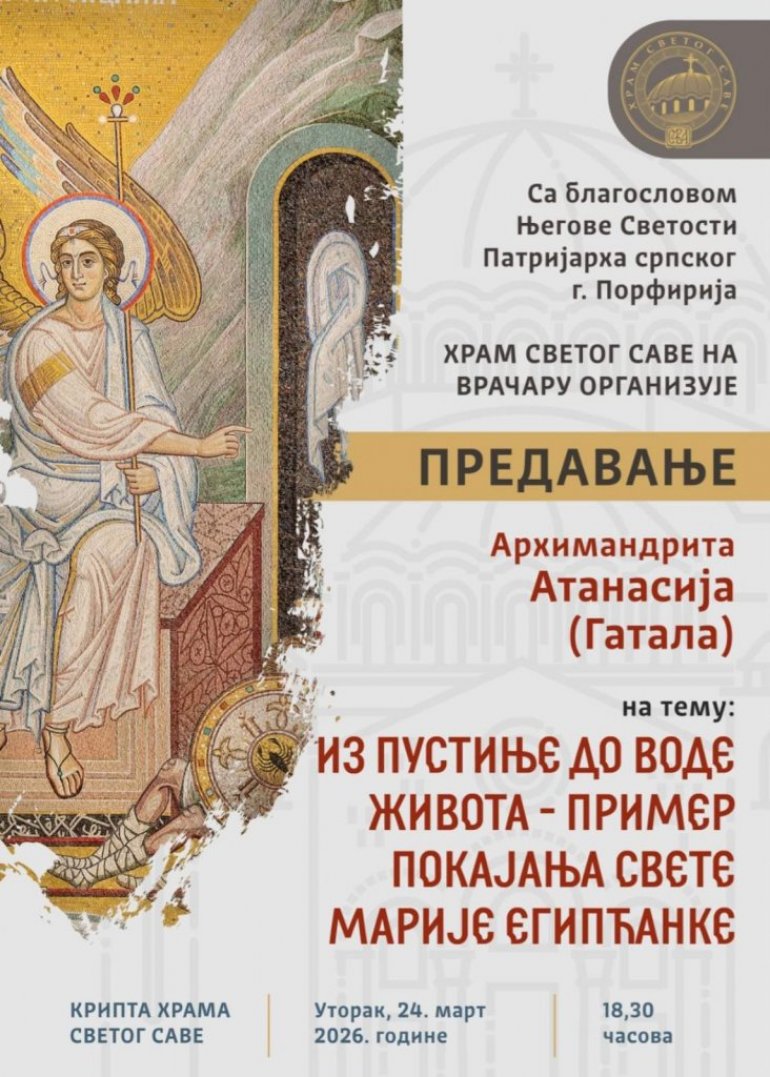 Са благословом Патријарха српског Порфирија, у среду 25. марта, биће настављени "Разговори о филму" у организацији Мисионарске делатности Храма Светог Саве. Љубитељи филма ће моћи да чују предавање на тему "Православна Далмација", гледају филмове из серијала "Монашки кувар" и чују два изузетна говорника: продуцента и редитеља Миљана Гогића и филмолога, филмског критичара и теоретичара филма Божидара Зечевића. Почетак је у Парохијском дому Храма на Врачару у 19 часова и 30 минута, улаз је слободан.