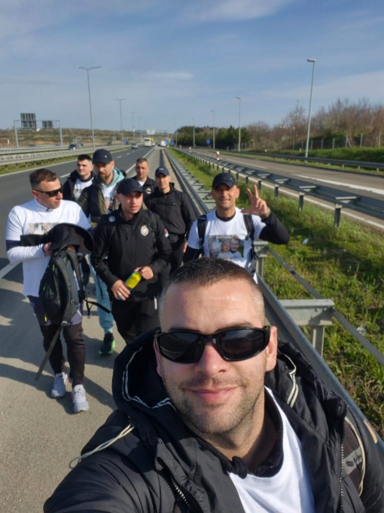 Чланови групе, коју чине припадници Интервентне јединице, Специјалне антитерористичке јединице и командири Окружног затвора (Никола Миловановић, Марко Митић, Марко Дабиžљевић, Марко Лечић, Синиша Митић, Владица Митић, Владимир Јашић, Ђорђе Пакљанац и Милош Лаковић), затражили су пред пут од Његове Светости Патријарха Порфирија благослов за пут, као и духовне савете за превазилажење искушења током овог захтевног хуманитарног подухвата, чији је циљ прикупљање средстава за лечење тешко оболелих малишана Софије Лаковић из Београда и Феђе Алковића из Подгорице.