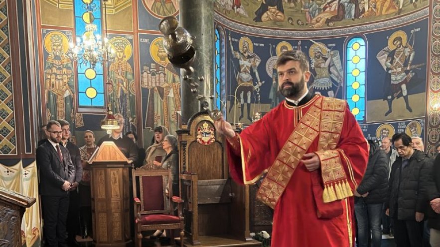 Његовој Светости саслуживали су протојереј-ставрофор Радивоје Панић, протојереји: Ђорђе Стојисављевић, шеф Кабинета Патријарха српског, Драган Шовљански, Предраг Продић и Иван Штрбачки, јереј Бранислав Кличковић, протођакони: Драган Радић и Радомир Врућинић и ђакони: Василије Перић и Владимир Јовић.