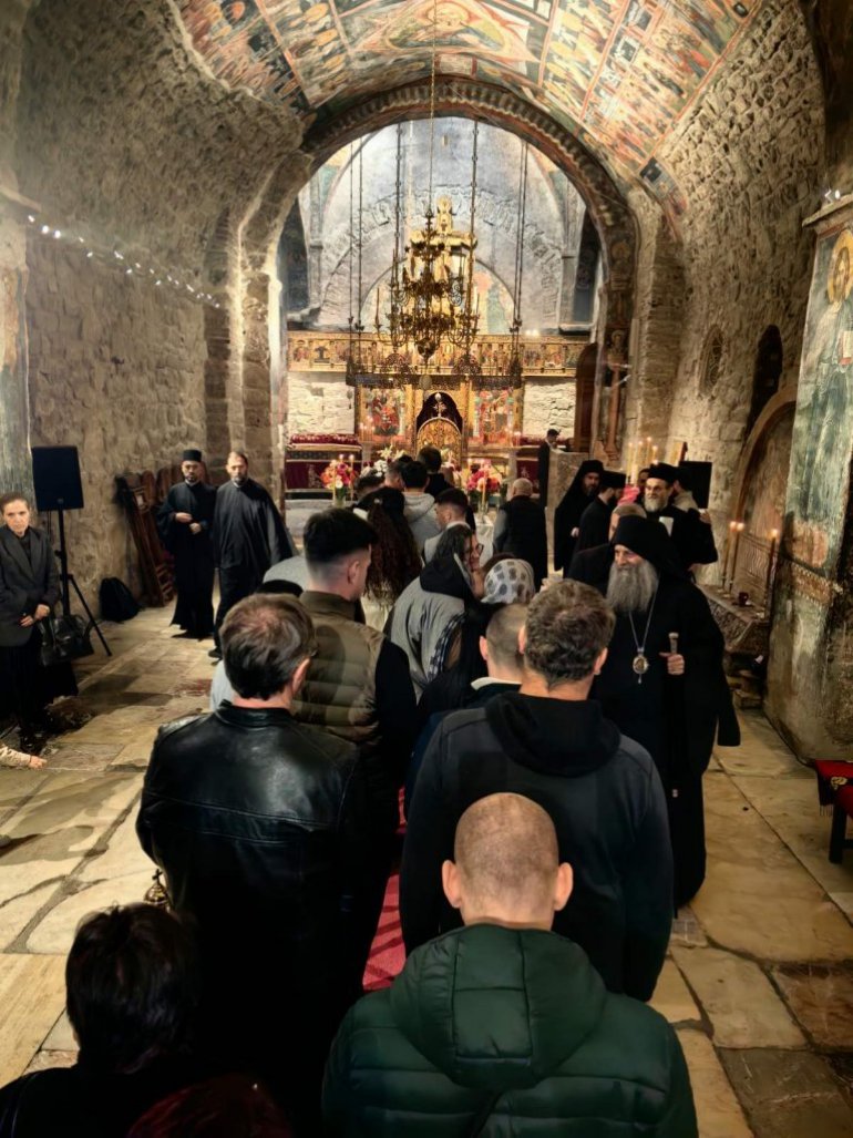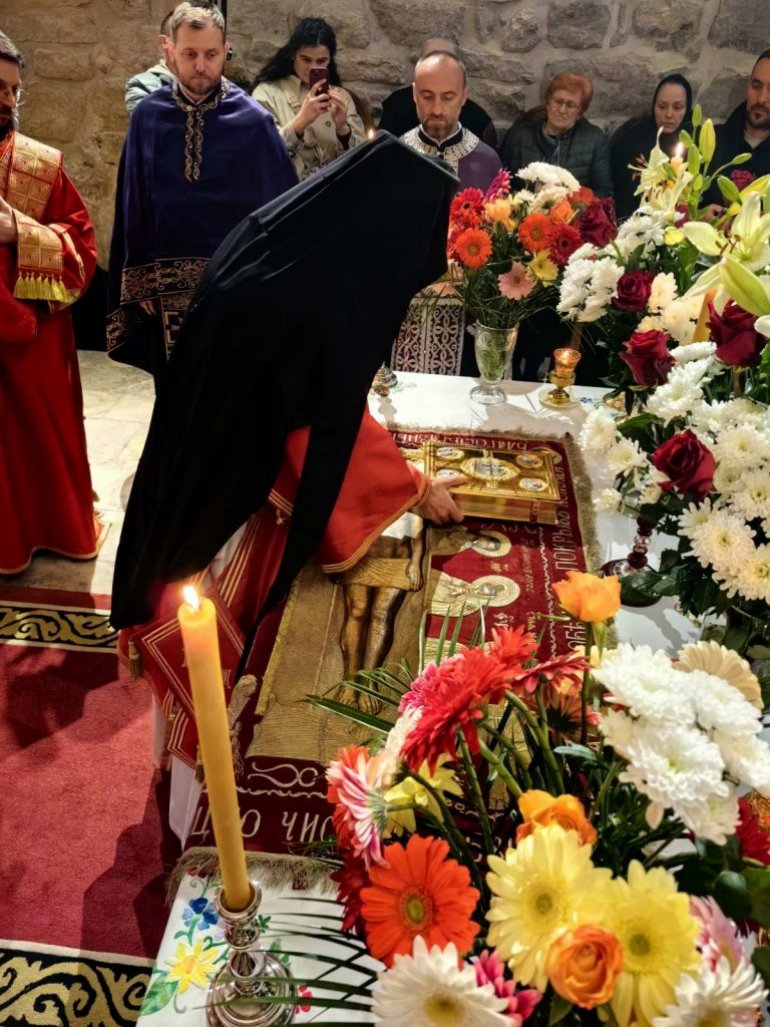Обраћајући се сабранима у манастирској порти, Патријарх Порфирије је нагласио да је Велики петак за нас људе тужан и трагичан дан јер смо распели Господа. "Ми Га и данас непрестано распињемо кад год смо себични и када гордост влада нашим бићем. У исто време, ово је благословен дан. Господ је постао све оно што смо ми, прошао је све што људи пролазе и умро је на крсту да би укинуо последњу препреку која нас раздваја од Царства Божијег – смрт. Он је својом смрћу разорио и победио смрт", рекао је Патријарх.