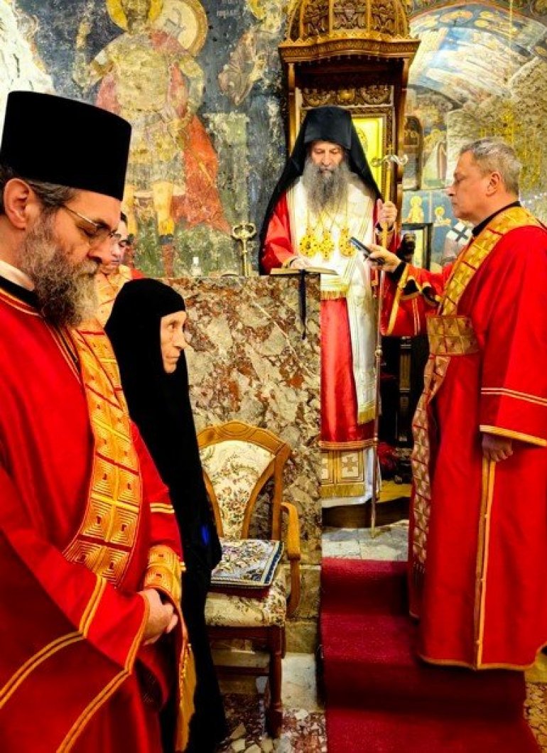 Патријарху Порфирију саслуживали су: архимандрит Данило, директор Патријаршијске управне канцеларије; презвитер Немања Калем; протођакон Драган Радић; ђакон Василије Перић, сестринство манастира на челу са игуманијом Харитином, као и верни народ Божији.