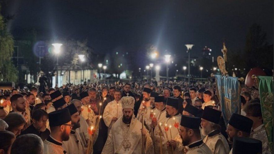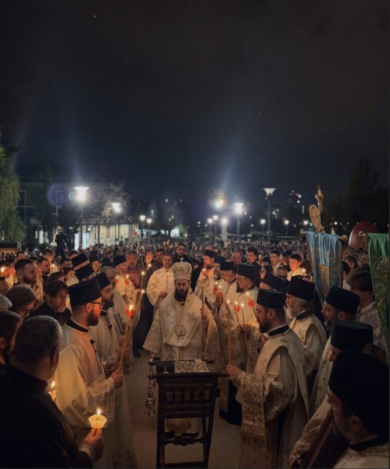 У заветном Храму Светог Саве на Врачару у поноћ је Васкршњим јутрењем и Васкршњом Литургијом началствовао викарни Епископ топлички Петар, док је Литургију од 9 часова служио викарни Епископ моравички Тихон.