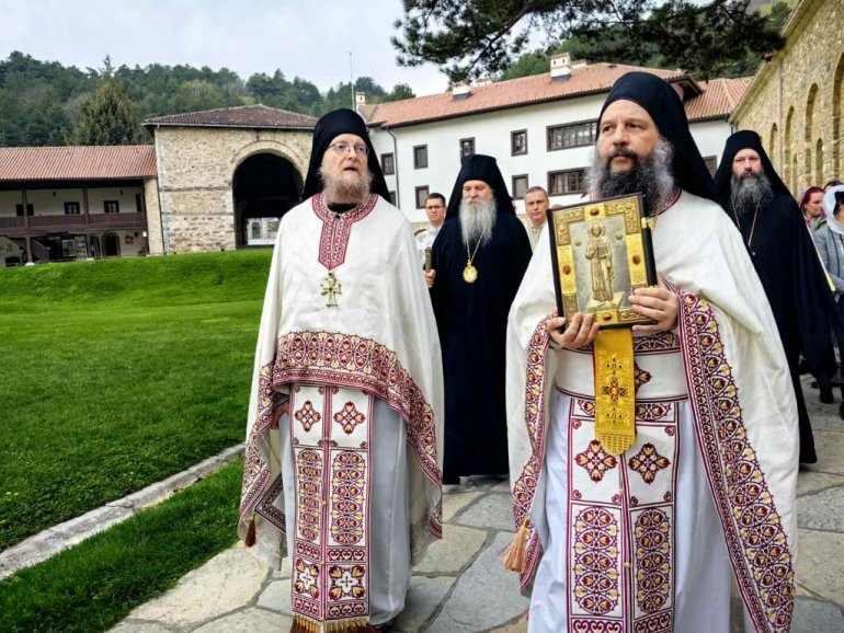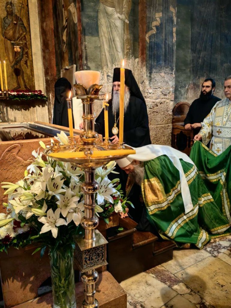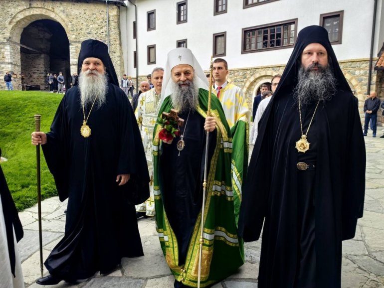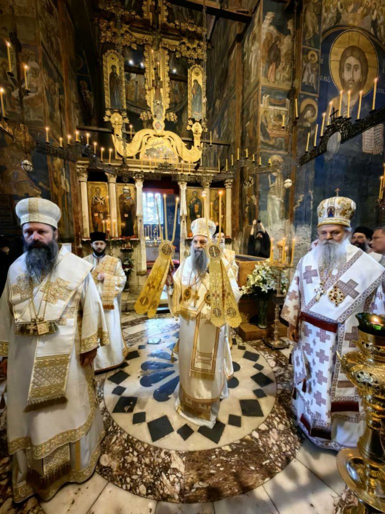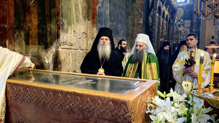 Пре почетка Свете Литургије, Патријарх Порфирије се поклонио светим моштима Светог краља Стефана Дечанског, заштитника ове свете обитељи.