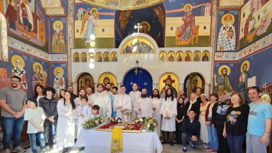 Гости из Грчке у Храму Светог Симеона на Новом Београду