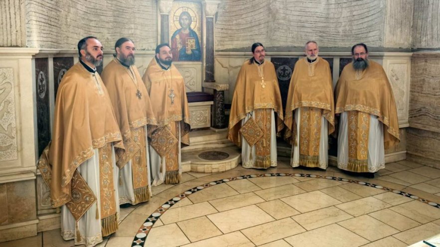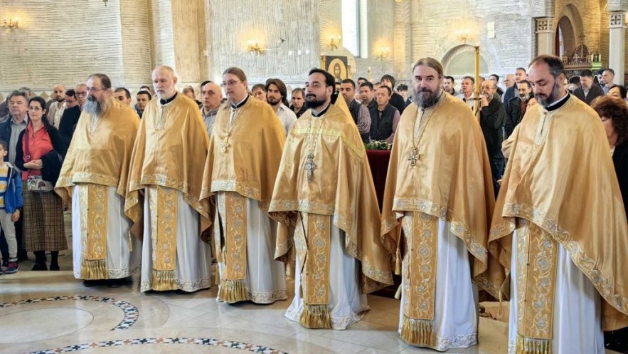 Светом Литургијом началствовао је архимандрит Спиридон, старешина Храма Светог пророка Илије из солунске општине Пилеа, уз саслужење братства Храма Светог Симеона на челу са архимандритом Данилом, старешином храма и директором Патријаршијске управне канцеларије, и протојереја-ставрофора Јована Милановића, ректора Карловачке богословије.