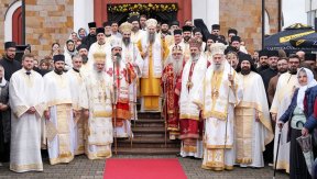 Високопреосвећеном су саслуживали: протојереј Никола Ковач, архијерејски намјесник србински, јереј Љупко Медовић, парох миљевински, јереј Милош Јањић, проф. богословије у Фочи, јереј Милан Милановић парох загорски (калиновачки) и ђакон Будимир Гардовић.