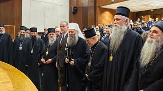 -На данашњи дан народ се окупља у храмовима широм Косова и Метохије, у Дечанима, Пећкој патријаршији, Богородици Љевишкој, Девичу, Соколици... Данас је сабор, народ се сабира на молитву да би прославио Ону која је прославила Бога тако што га је родила и служила људима на спасење. Некад би Господ молитвама Пресвете Богородице заштитио и ову свету обитељ и мати игуманију, сестре које служе овде и које су верне овој светој обитељи, као што су некада мироносице биле верне Христу под крстом. Када је било најтеже и када је Господ страдао на крсту оне су верно стајале. Тако и наше монахиње на Косову и Метохији и у Пећкој Патријаршији, Грачаници и свуда верно служе и остају у нашим светињама које страдају, које су у опасности са вером и надом у Бога, навео је Владика.