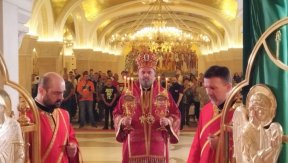 ТВ ХрамНа крају Евхаристијског сабрања Епископ Стефан је освештао славске дарове и преломио славски колач, а потом је честитавши свим присутним храмовну славу у беседом говорио о празнику.