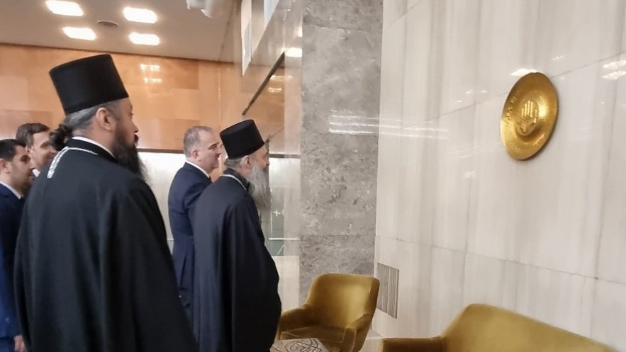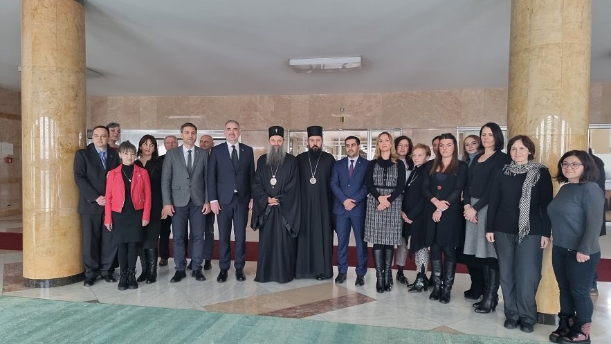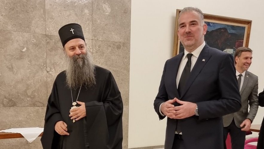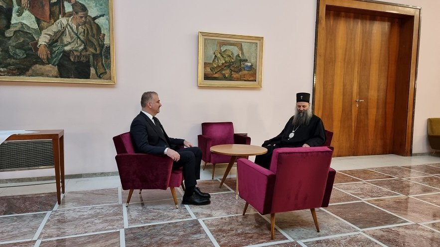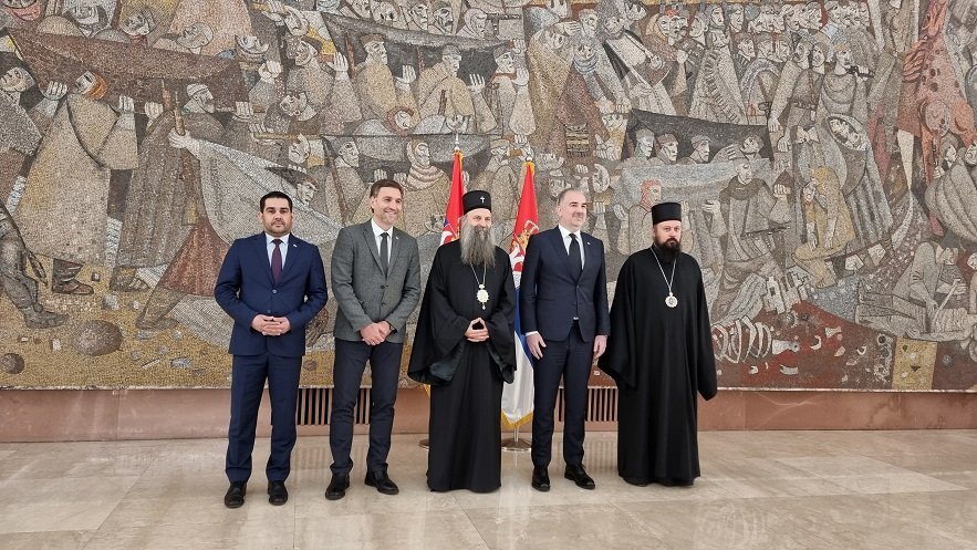 ТВ ХрамПатријарха Порфирија je у Палати Србија срдачно дочекао директор Управе др Владимир Рогановић са помоћницима др Марком Николићем и др Феридом Булићем. Патријарх Српски обишао је део Палате Србија, као и Управу за сарадњу са Црквама и верским заједницама и том приликом се упознао са запосленима Управе.