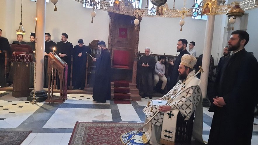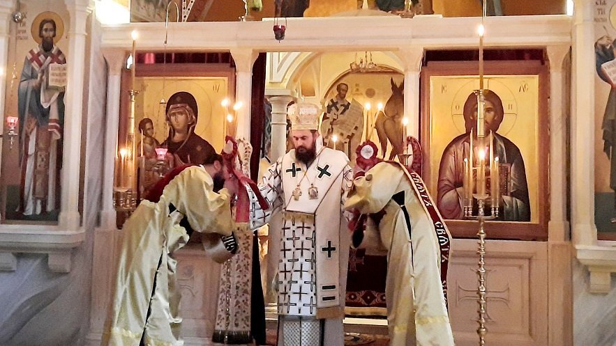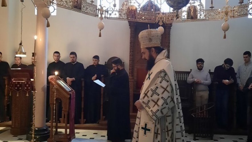 На самом почетку беседе епископ Јустин се осврнуо на јеванђељску перикопу о Пастиру добром, која упућује и говори о Богочовеку Христу. Епископ Јустин је подсетио да није без разлога Црква установила да се на празнике Светитеља, Божијих угодника који су се прославили у епископском чину, читају оваква Јеванђеља, јер сваки епископ својим бићем, делима и служењем сведочи Христа распетог и васркслог.