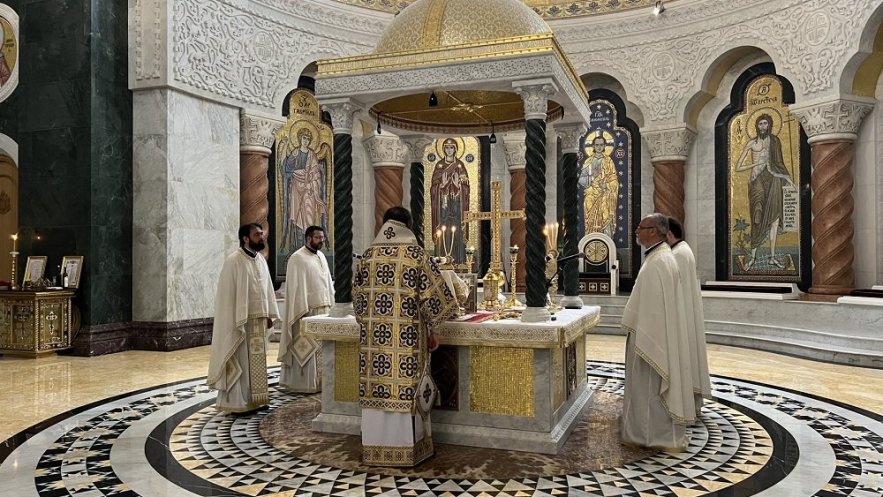 У ову другу недељу након Васкрса коју Црква посвећује јеванђелској причи о Томи, Христовом ученику који је рекао да неће поверовати у Васкрсење док лично не додирне Учитеља, Епископу Стефану саслуживали су пречасни презвитери и часни ђакони храма Светог Саве, уз молитвено учешће великог броја сабраног народа Божјег.