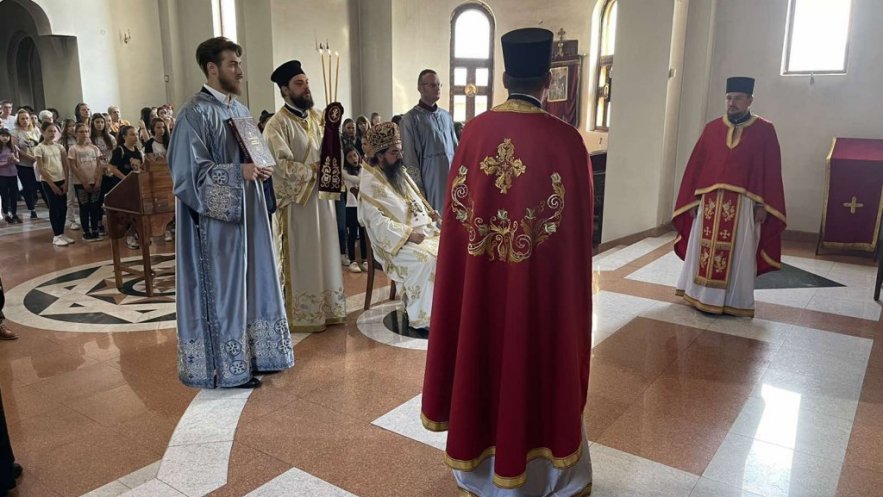 У својој беседи, Епископ Јеротеј је говорио о прочитаном Јеванђељу и рекао да је Бог удостојио нас кроз Господа нашег Исуса Христа будемо равночасни Њему Богу Оцу и због тога треба да смо веома благодарни Богу и да славимо овај величанствени празник који почиње данас да се слави, а у петак се завршава. Да благодаримо Богу на Његовом великом човекољубљу и на Његовој великој љубави што воли нас грешне људе и што не само да је дошао у овај свет и прошао људски живот, притом помажући свима и узимајући страдања и страсти, невоље и муке свих и на крају је и умро за све, него и васкрсао, а кроз њега и ми и увео нас у Царство Небеско.