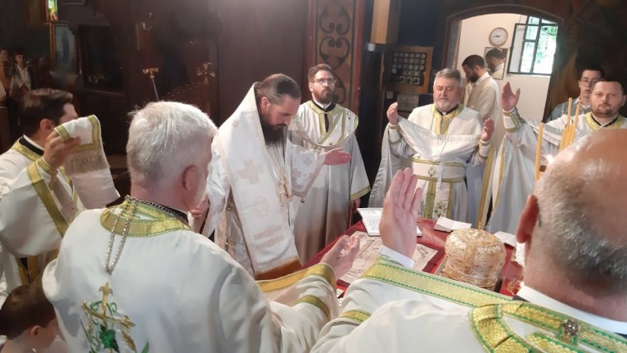 ТВ ХрамЊегово Преосвештенство Епископ хвостански и изабрани западно-европски Г. Јустин са благословом Његове Светости Патријарха српског Г. Порфирија поводом славе храма светих цара Константина и царице Јелене на Вождовцу служио је свету архијерејску Литургију у петак 03. јуна 2022. године уз саслужење свештенства Архиепископије београдско-карловачке и молитвено учешће верног народа Божијег.