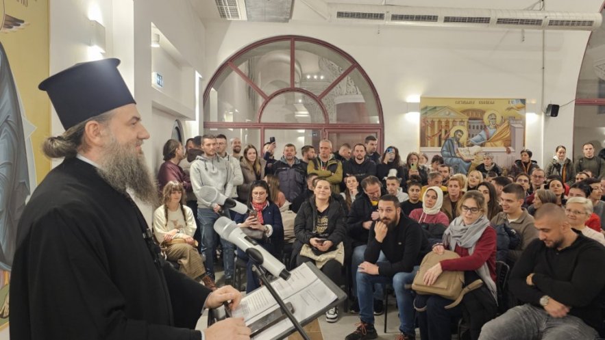По благослову Његове Светости Патријарха српског Г. Порфирија одлуку Светог Архијерејског Сабора о избору Епископа Јеротеја за Епископа шабачког прочитао је Епископ зворничко-тузлански Фотије.