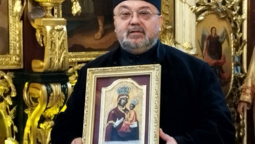 Старешина Богородичне цркве у Земуну, протојереј Небојша Тополић уручио је Преосвећеном Епископу Алексеју дар у знак благодарности, захвалности и љубави икону Богородице Земунске Краснице.