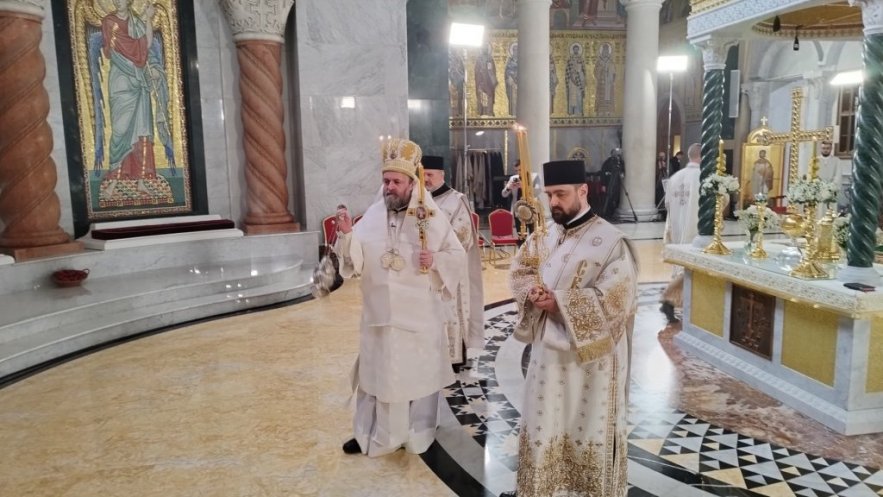 Његово Преосвештенство Епископ хвостански г. Алексеј, викарни Епископ Његове Светости Патријарха српског г. Порфирија, служио је свету архијерејску Литургију у Пећкој Патријаршији на Празник Васкрсења Господа нашег Исуса Христа, 16. априла 2023. године.