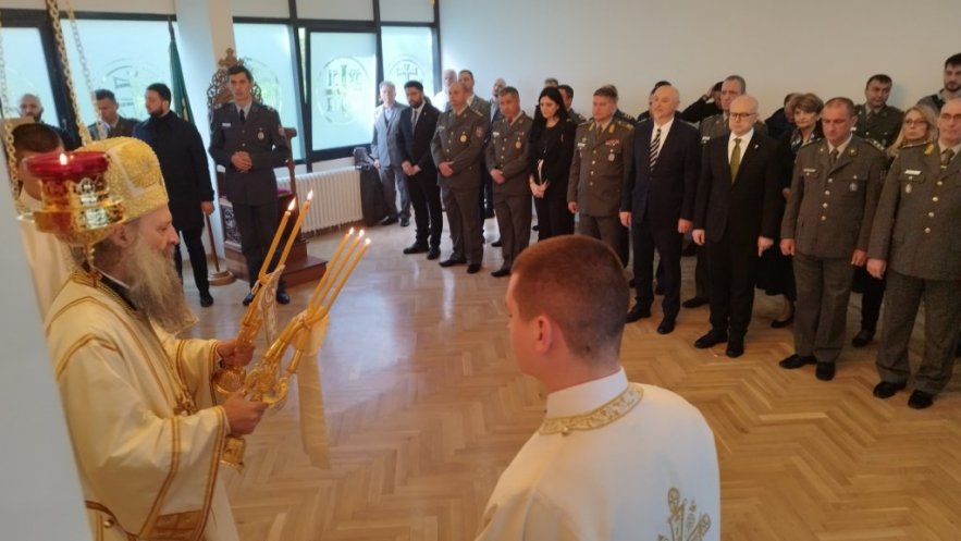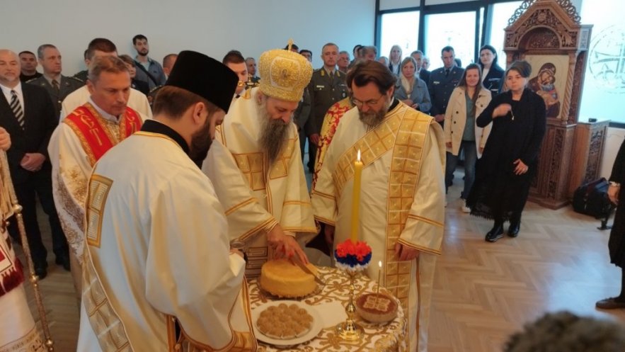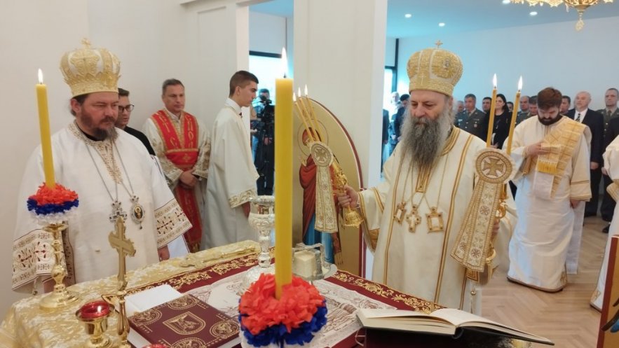 Пре свете Литургије Патријарх Порфирије освештао је капелу, уз саслужење Преосвећеног Епископа липљанског г. Доситеја и молитвеном присуству припадника Војске Србије и потпредседника Владе и министра одбране Републике Србије г. Милоша Вучевића.