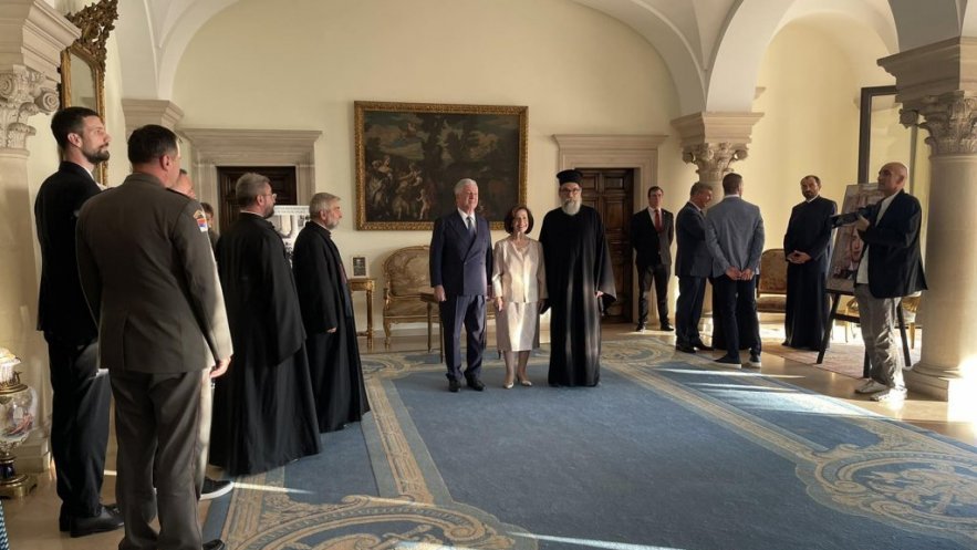 За Његову Светост Патријарха српског г. Порфирија је уручено ексклузивно 100-то издање „Владари Србије“, посебно вредно међу филателистима.
