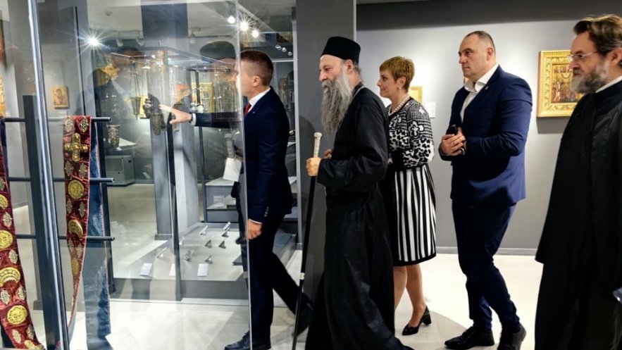 ТВ ХрамПатријарх Порфирије у пратњи архијереја посетио је и ризницу манастира Житомислић.