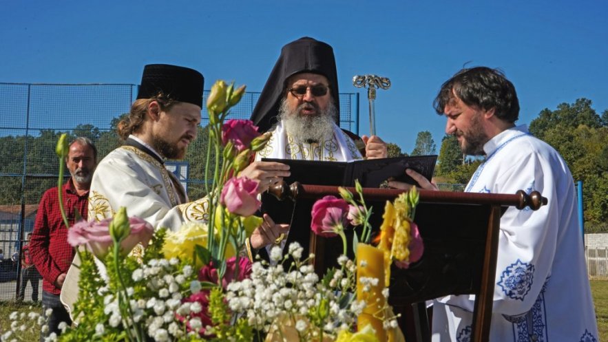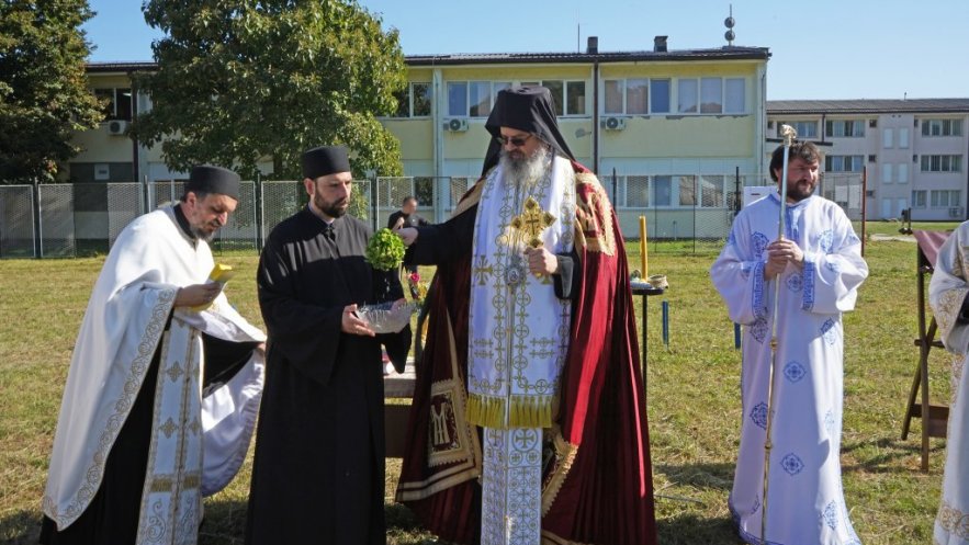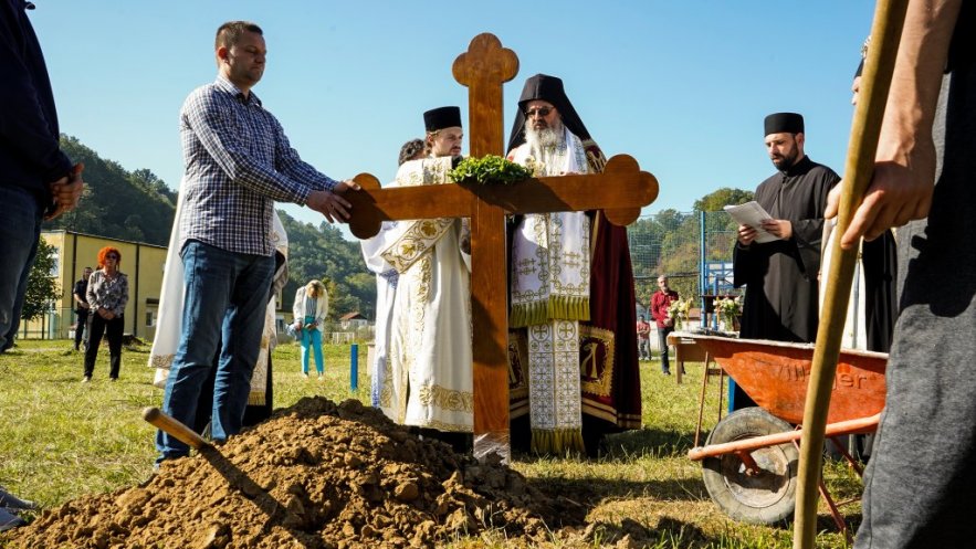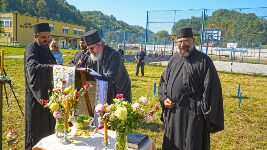Први грумен земље око крста, где ће бити свети олтар, нанео је Владика Исихије, благосиљајући сабране којима је, према његовим речима, дата јединствена прилика у животу да учествују у процесу изградње дивног храма, који ће засијати и осветити овај простор и све душе које са вером прилазе и моле се у њему, што је велики Божји благослов.
