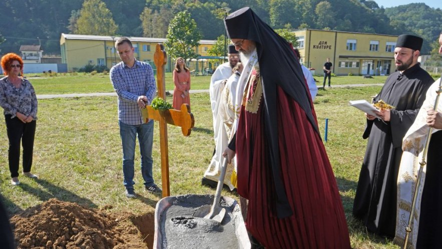 Учествовањем у зидању храма, молитвеном подршком онима који раде, и ми сами своје душе зидамо као домове у које треба да примимо Господа Исуса Христа, Који је дошао ради тога да буде са нама. Сабираћемо се у славу Божју и под окриљем Светог Димитрија у овом храму и узносићемо молитве покајне и благодарне, јер нас је Господ све призвао Себи и све нас у љубави очекује и освећује свакога, који Му са вером прилази- рекао је Владика Исихије, благосиљајући почетак градње и све који ће принети свој труд у изградњи и одржавању светиње.