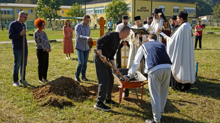 По благослову блажене успомене Епископа шабачко- ваљевског Лаврентија, од 2005. године у КПЗ Ваљево богослужења се обављају у Капели Светог Саве. Трудољубљем духовника установе јереја Дејана Трипковића, коме је установу на старање поверио блаженопочивши Епископ ваљевски Милутин, духовни живот у њој је веома богат. Често се служе Литургије, прослављају сви велики празници, а штићеници имају прилику и да послушају предавања у циклусу „Православље и млади“, будући да се гости трибина на позив оца Дејана Трипковића радо одазивају да посете овдашњи Дом културе и поразговарају са младићима, који се налазе на одслужењу казне. Око 98 одсто њих је православне вероисповести, те је потреба за храмом заиста велика, имајући у виду значај литургијског живота у ресоцијализацији осуђених лица и њиховог повратка у друштвену заједницу. Они који су других вероисповести такође имају простор и време за своје верске потребе, каже начелница Одељења за третман Наташа Стевановић. Она је данас је била посебно радосна, јер се управо служба којом руководи брине о организацији духовних активности штићеника. Добродошлицу гостима је пожелела и управница КПЗ Светлана Веселиновић, која је такође са сарадницима и штићеницима учествовала у приносу молитве за Божји благослов градње храма. Владика Исихије даривао је будућој светињи Свето јеванђеље и освећеном водом покропио све окупљене, док су свештеници Дејан Трипковић и Глигорије Марковић поделили иконице и житије Светог великомученика Димитрија. Свечаност је заокружена трпезом љубави, коју су штићеници припремили за запослене и госте.
