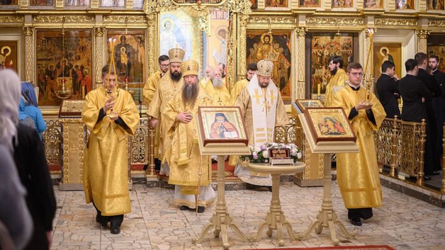 Светом литургијом је началствовао ректор – епископ сергијевопосадски и дмитровски Кирил, а заједно с њим су служили јерарси Српске Цркве, моравички епископ Антоније и марчански епископ Сава, свештенослужитељи Академије и гости у свештеном чину.