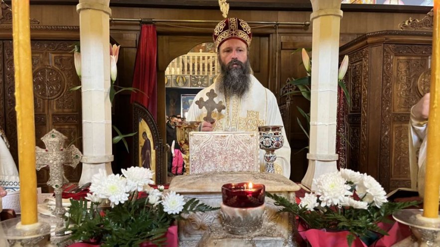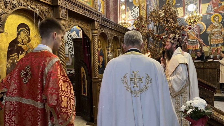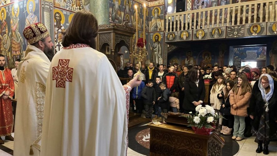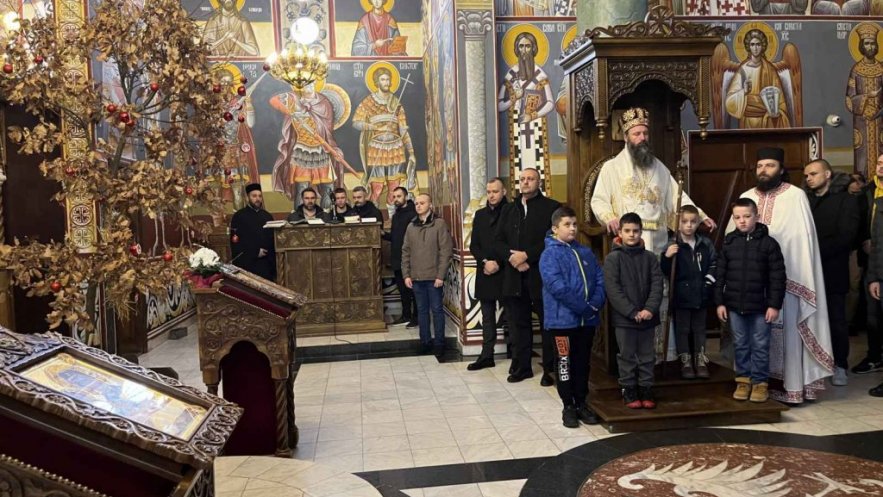 Обраћајући се сабранима беседом, Преосвећени Епископ је рекао да се не чудимо страдањима, да се не чудимо ако делује да се овај свет дрмуса и да је несигуран, да не страхујемо ако је пред нама неизвесност. Ми имамо Живога Бога са нама који се родио да би дошао међу нас и да би остао са нама. Тим искуством, том вером и таквим усмерењем су живели и наши свети преци. Тако и ми да свагда гледамо Господа пред собом, да не гледамо земљу, него да гледамо небо. А онда када гледамо небо, када гледамо благи лик Христов, када разговарамо са Њим, када се мењамо, када дишемо тај ваздух који долази из вечности, онда нас Бог умудри и умири да знамо како да поступамо и данас и сутра, да знамо како да поступамо и на тргу и на пијаци и у школи и у општини, али мора Бог да нам буде на првом месту. Када год осетите неку тескобу, неко помрачење знајте да сте запоставили Бога и да више није на првом месту у вашем животу.