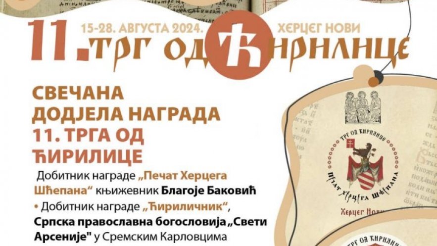 У понедељак 26. августа с почетком у 21ч у Херцег Новом биће одражана свечана додела награда 11. трга од ћирилице.