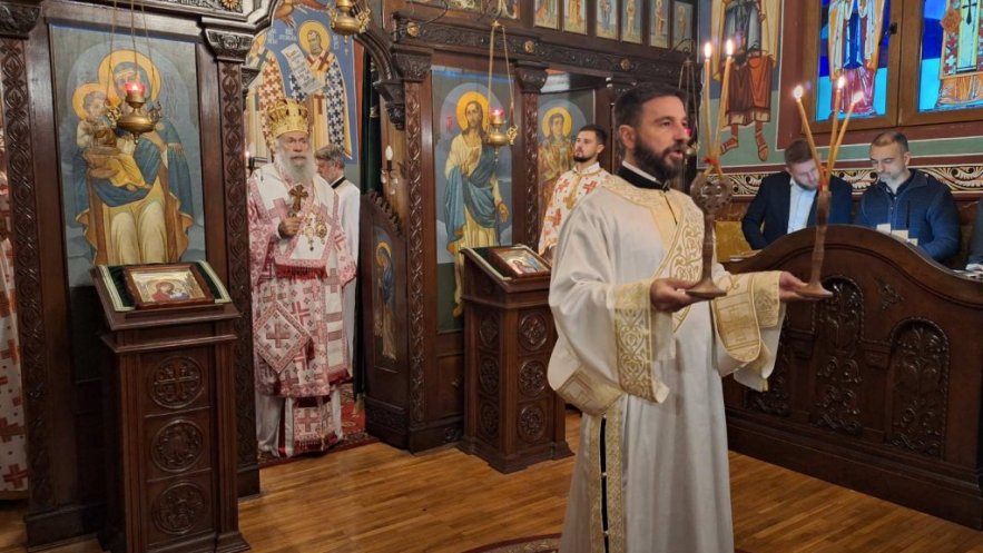 ТВ ХрамЕпископу Алексеју саслуживао је свештенство Архиепископије београдско-карловачке у молитвеном присуству верног народа.