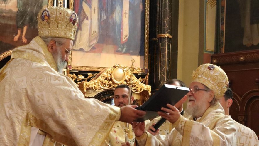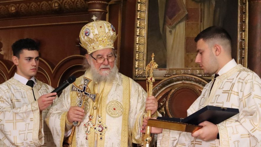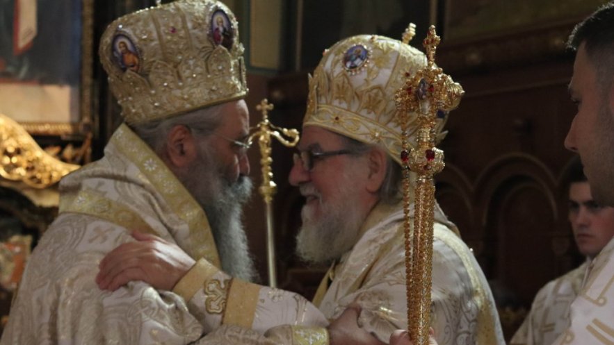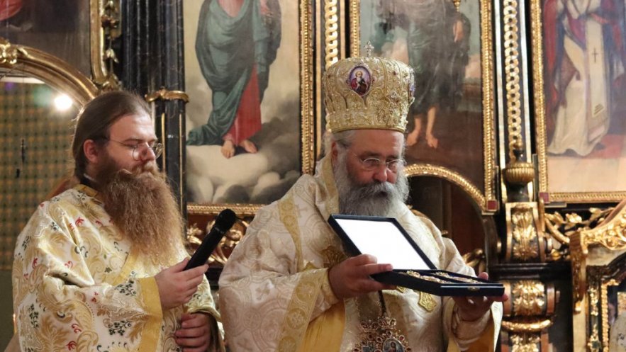 На крају Евхаристијског сабрања Митрополит Василије је на молитвено сећање и као знак јединства митрополиту китруском Георгију даровао панагију. Високопреосвећана господа Митрополити су се кратко обратили. Владика Василије се захвалио на доласку Митрополиту Георгију, те подсетио на значај одржане конференције у Богословији која чува традицију дугу 230 година. Владика Георгије се захвалио на позиву и гостопримству у Карловачкој богословији, те упутио позив да је наш народ увек добродошао у Јеладској Православној Цркви..